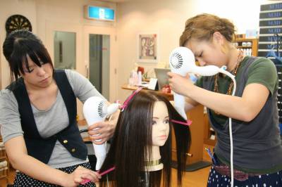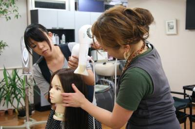 優しい手さばきで、しっかりとドライした髪を
