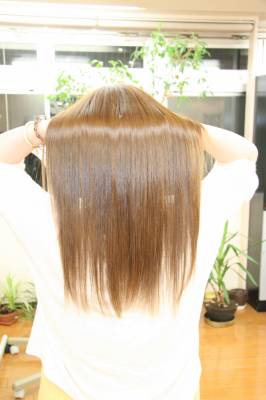 その後、ストレートアイロンでの熱処理を完成させ、