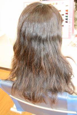 ゆるくクセが出ている髪質で毛先15センチにダメージがある状態です。