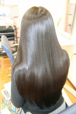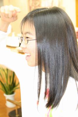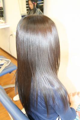 お嬢様の髪にストレートパーマをした時の写真をUPさせていただきます。