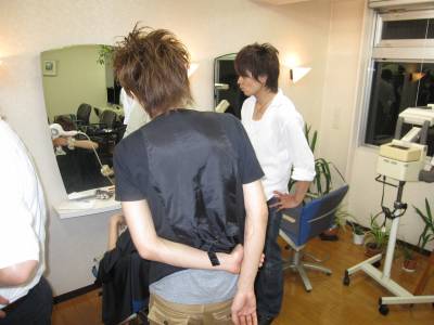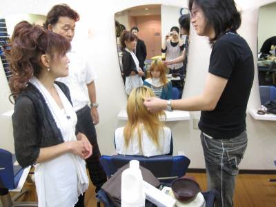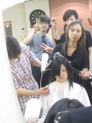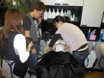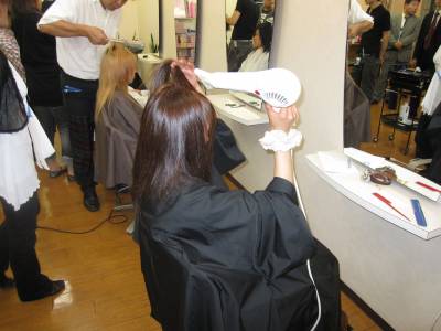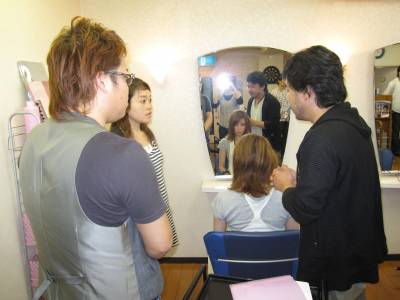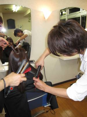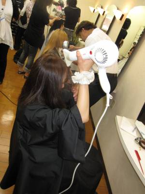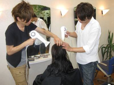最後は、更に綺麗にすべく、お二人でモデルさんの髪を