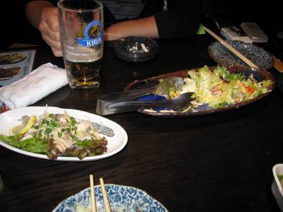 この写真は温玉シーザーサラダと、酢もつ。生きててよかった。
