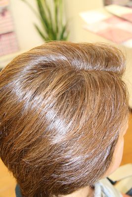 白髪にも色が入り、黒髪も明るく染まっていますね。