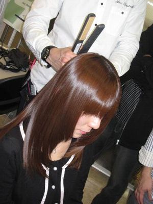 更に熱を加えながら毛先の方向を整えて