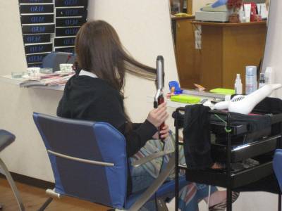 自分でコテ巻きしちゃってます。